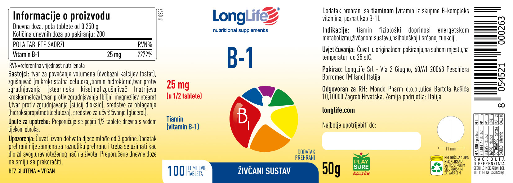 Trenutačno, u Italiji preporučena dnevna doza vitamina B1, koju je utvrdilo Ministarstvo zdravstva, iznosi 25 mg.