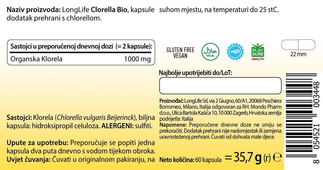 Ekstrakt klorele u ovom proizvodu dolazi od DNK certificiranih sastojaka.